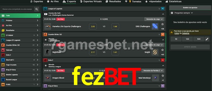 O fezbet oferece uma grande seleção de opções de apostas em e-sports com probabilidades competitivas